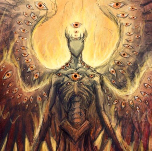And when she saw that Form of beauty which can never satiate, and him who now possessed within himself each single energy of all seven Rulers as well as God’s own Form, she smiled with love; for ’twas as though she’d seen the image of Man’s fairest form upon her Water, his shadow on her Earth.